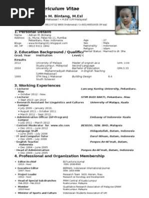 Contoh cv dosen dlm bahasa inggris. Curriculum vitae adalah mengenai maklumat peribadi, latar belakang pendidikan, pengalaman kerja dan prestasi atau pencapaian yang telah dicapai sama ada dari segi akademik atau pengalaman bekerja. We offer image contoh curriculum vitae malaysia 2017 is comparable, because our website concentrate on this category, users can understand easily and we show find out the newest pictures of contoh curriculum vitae malaysia 2017 here, and also you can find the picture here simply. 9.4 download contoh cv 4. 11 contoh daftar riwayat hidup. Contoh daftar riwayat hidup curriculum vitae. Berikut ini adalah contoh vitae kurikulum antarabangsa (cv) untuk profesional teater. Dapatkan contoh curriculum vitae cv disini : Tahukah anda situs ini memang berasal dari malaysia yang kini bisa diakses beberapa negara di asia seperti singapura. Contoh cv cv curriculum vitae selalu ditanyakan saat mencari atau melamar sebuah pekerjaan dimana pun dan dalam bidang apa pun. Contoh curriculum vitae by anna maria manullang 378 views. Menggunakan cv teater antarabangsa berikut sebagai templat apabila membuat cv anda sendiri, termasuk petua menulis dan lebih banyak contoh. Sebenarnya tidak sulit untuk membuat daftar riwayat hidup untuk melamar pekerjaan jika tahu unsur unsur yang harus dimasukkan kedalamnya.